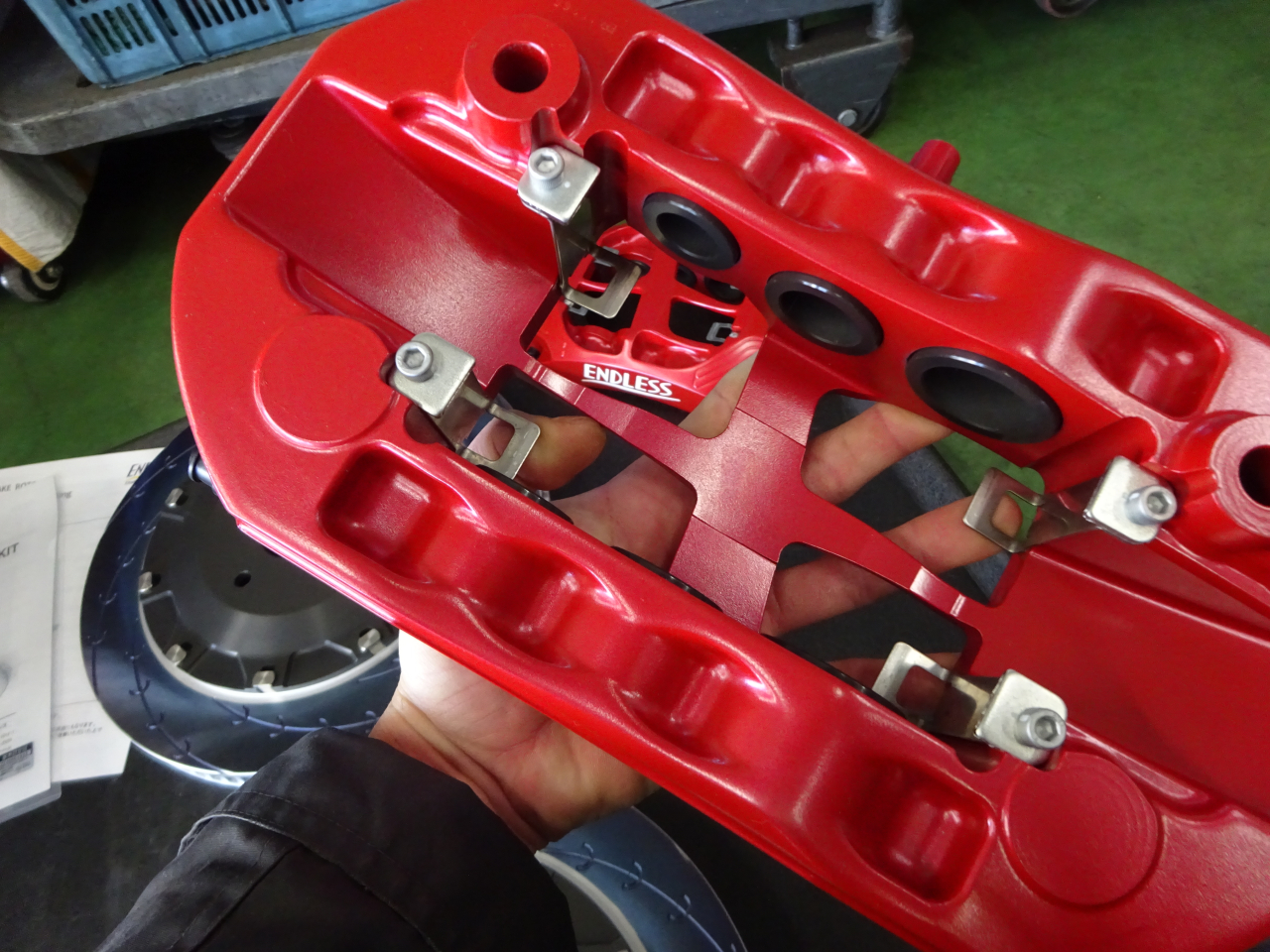 GRヤリスにエンドレスキャリパーキットの装着であります