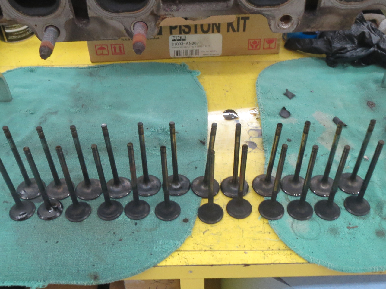 ブロック側は全て分解し、最後にヘッドの分解を行いました。走行距離はそれほど多くないエンジンですが、消耗品の消耗度はかなり進んでいます。さらに、ヘッドに関してはスラッジが多くバルブスプリングを分解してもバルブが簡単に抜けてこない状態でした。