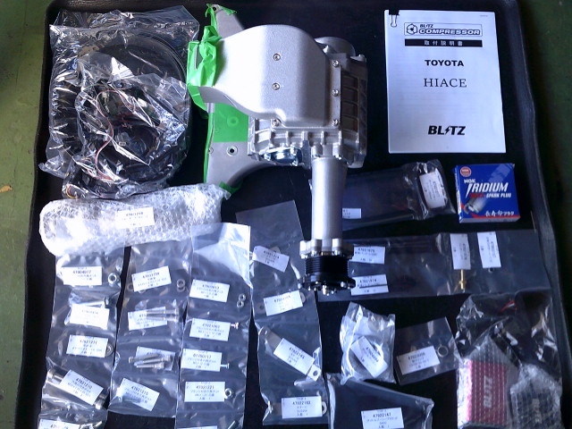 ハイエース ガソリン車に ブリッツの スーパーチャージャー付けてました。