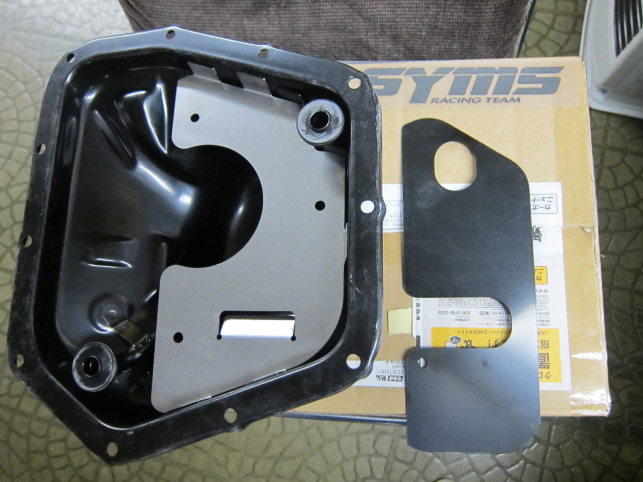 純正のオイルパンにバッフルプレートが1枚溶接されていてもう1枚のプレートを