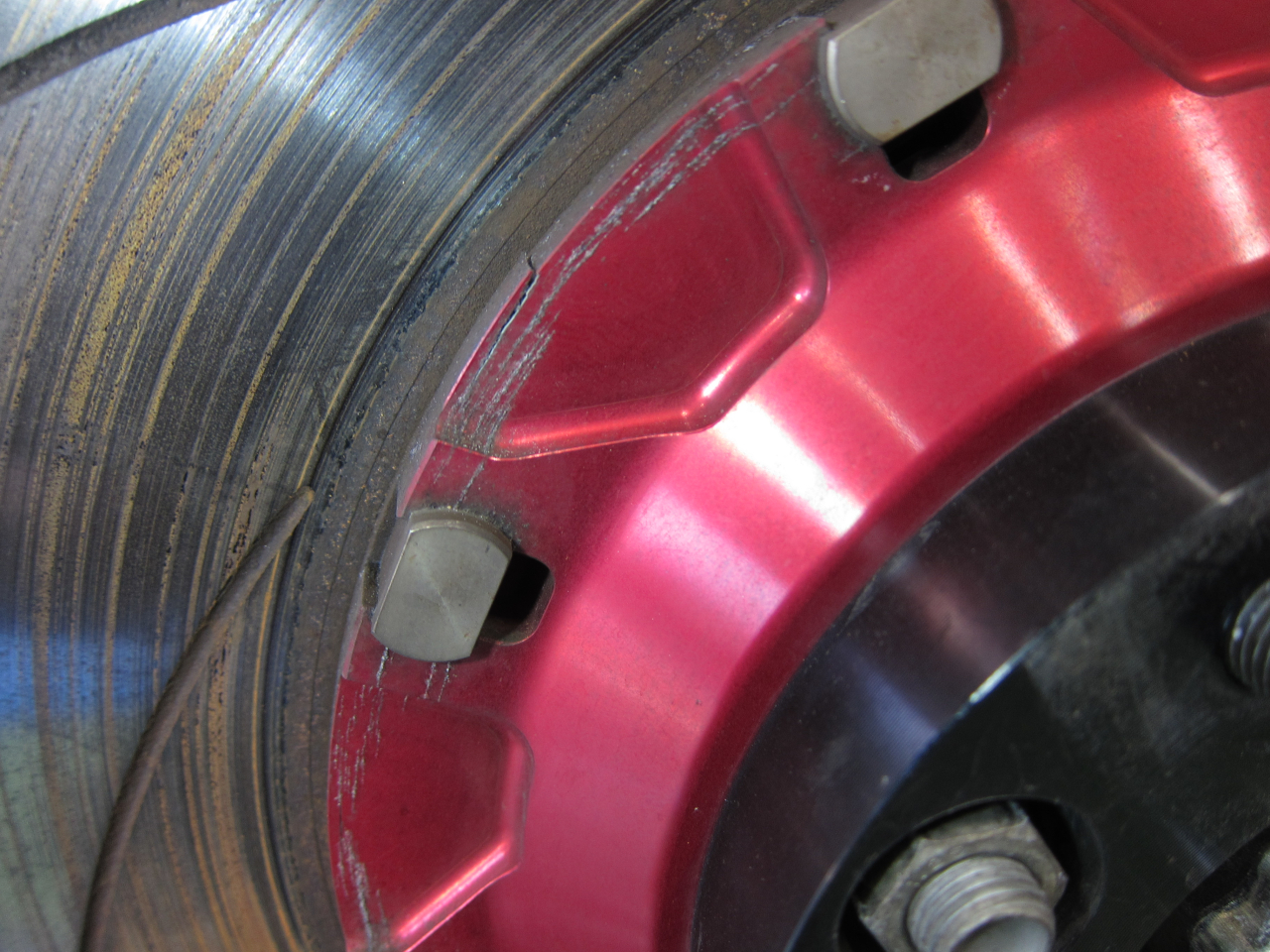 点検してみるとフロントブレーキローターのベルハウジングに