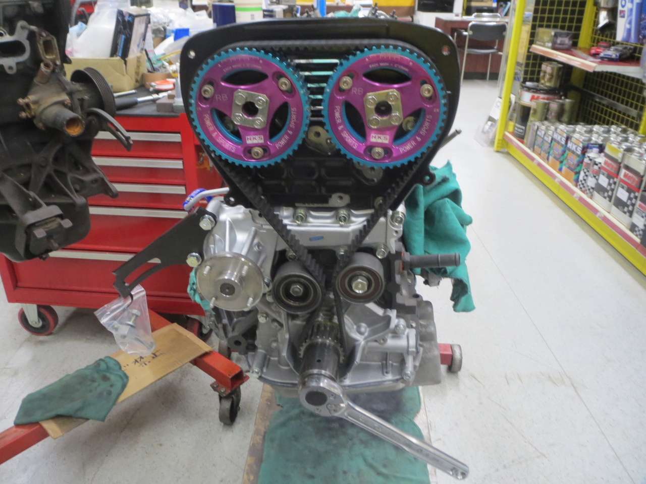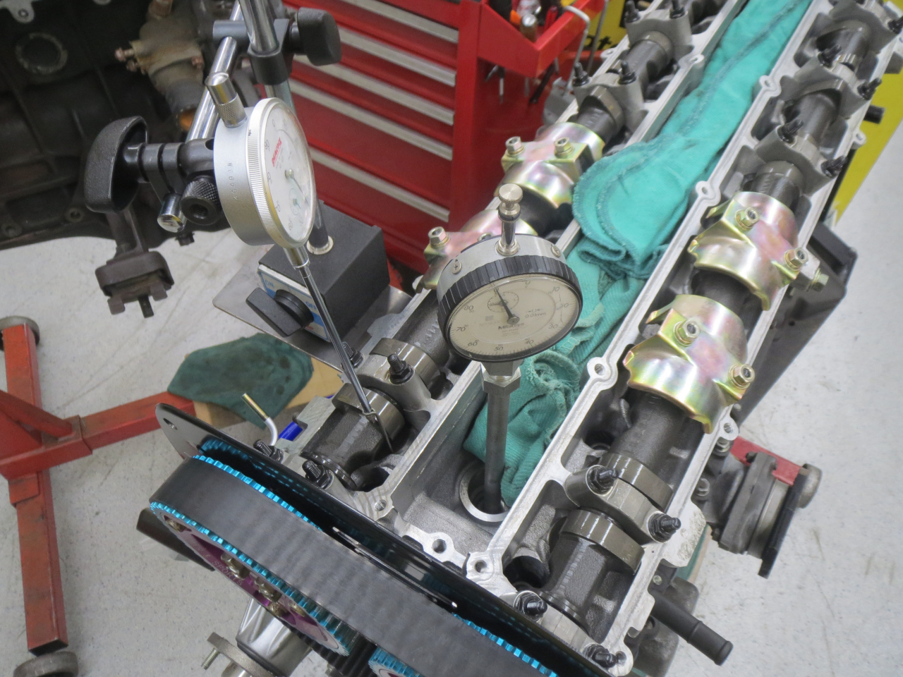 引き続きRB26エンジンオーバーホール作業です。ブロック・ヘッドの組付けも終わり、シム調整も狙ったクリアランスになりましたので、次は、バルブタイミング調整をおこなっていきます。