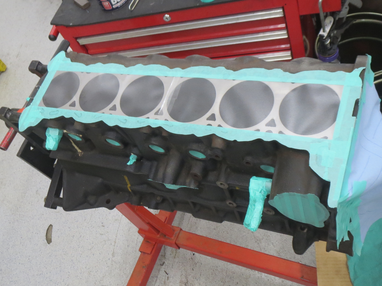 加工に出していましたER34 NEO6エンジンが、ブロックとクランクシャフトだけ返ってきましたので、早速エンジン組付けの準備をしていきます。まずブロック側ですが、油汚れ・サビ・塗装剥がれなどありましたので、ブロック回り洗浄・ウォーター/オイルラインなどエアブロー等おこない、マスキング後に塗装していきます。本日は雨が降っていますのでマスキング準備で終了。