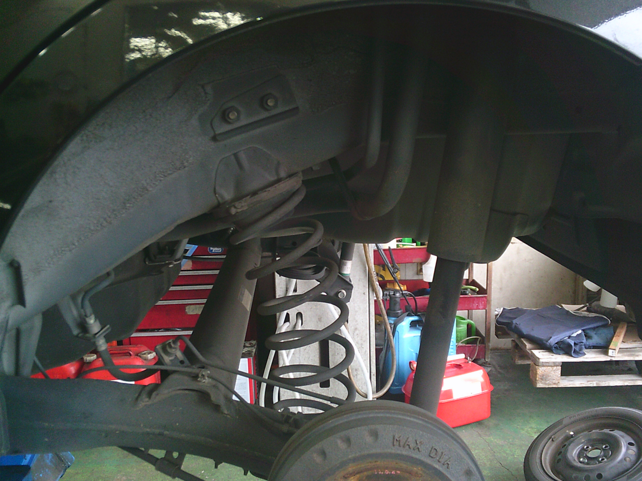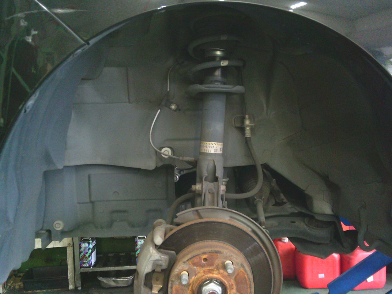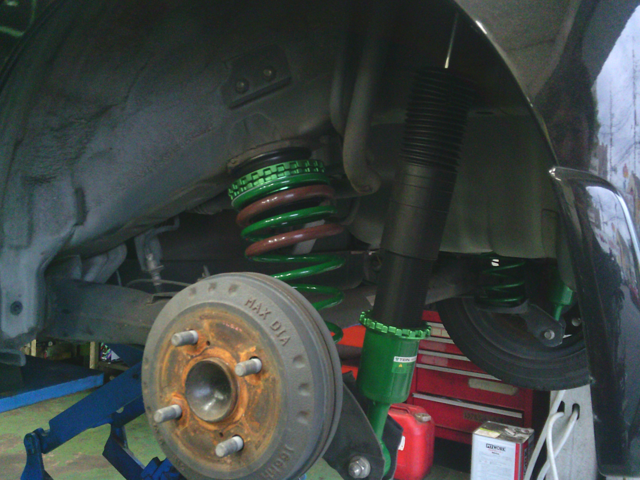 さて今日の作業は、ミラココア(L675S)に車高調を取り付けます!