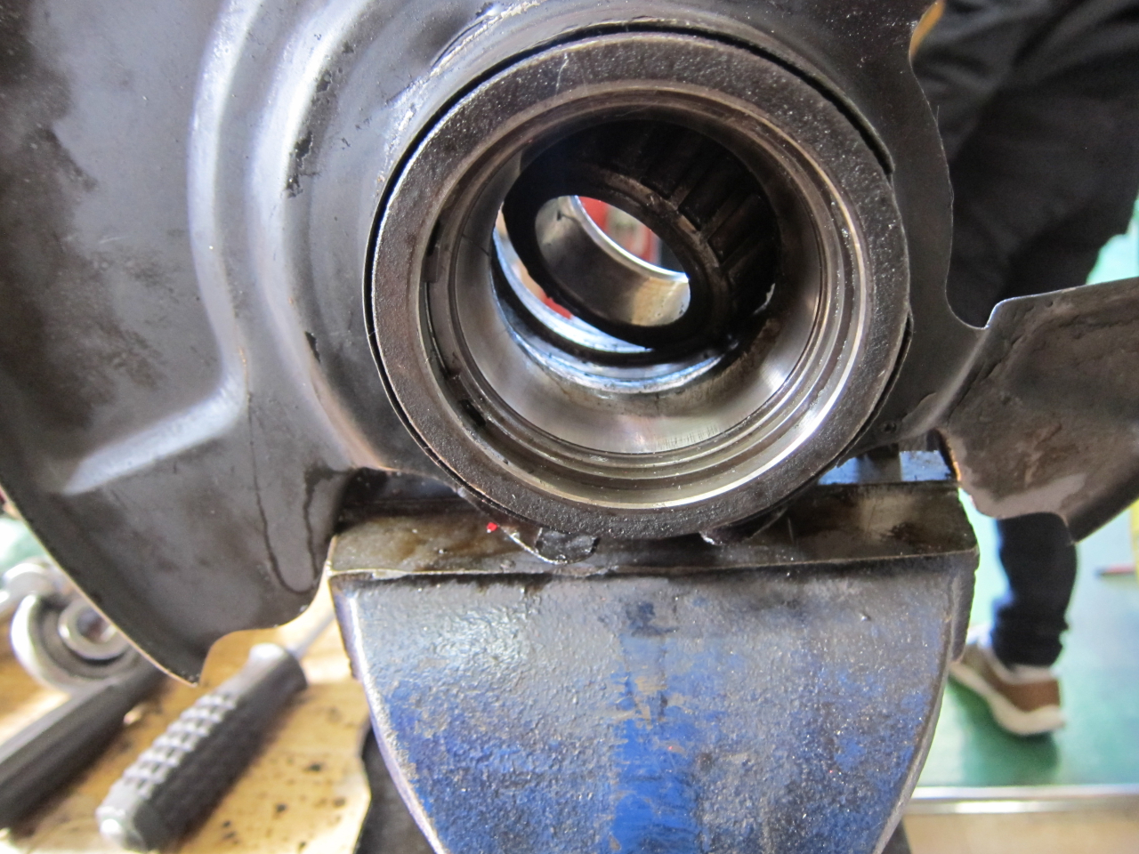 後はアウターレースを抜いて新しいベアリングを圧入してハブを圧入すれば作業終了です!