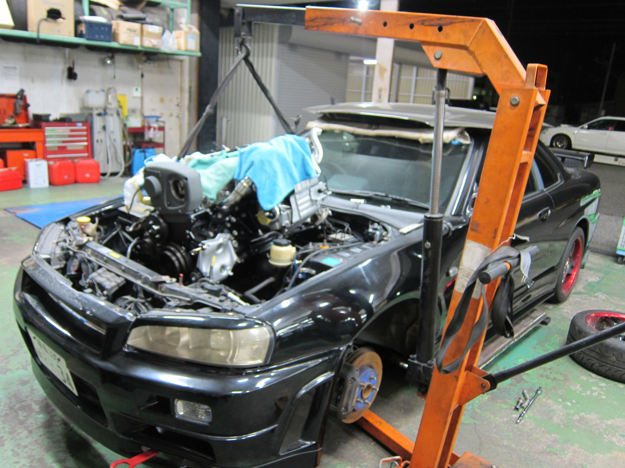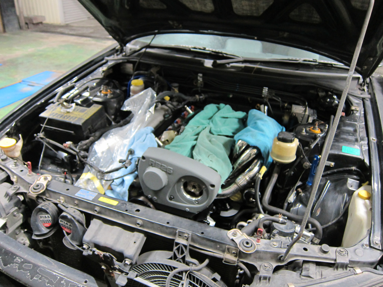 さて今日は、少し前から店頭で展示してあったRB25改RB28を車両に搭載しました!