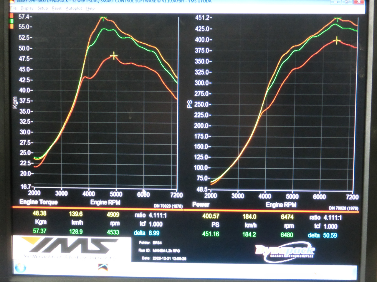 いや~な音もなく1.2kでは450馬力をオーバーした!